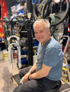 David hos Sport1 reparer sykkelen din, slik at du kan bruk den om og om igjen.